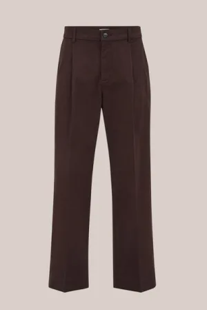 WE Fashion – Heren loose fit chino met bandplooi en elastische broekband – Loose fit – Donkerbruin – Katoen –