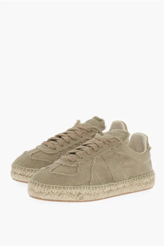 MM22 Katoenen lage sneakers met jutezool in groen