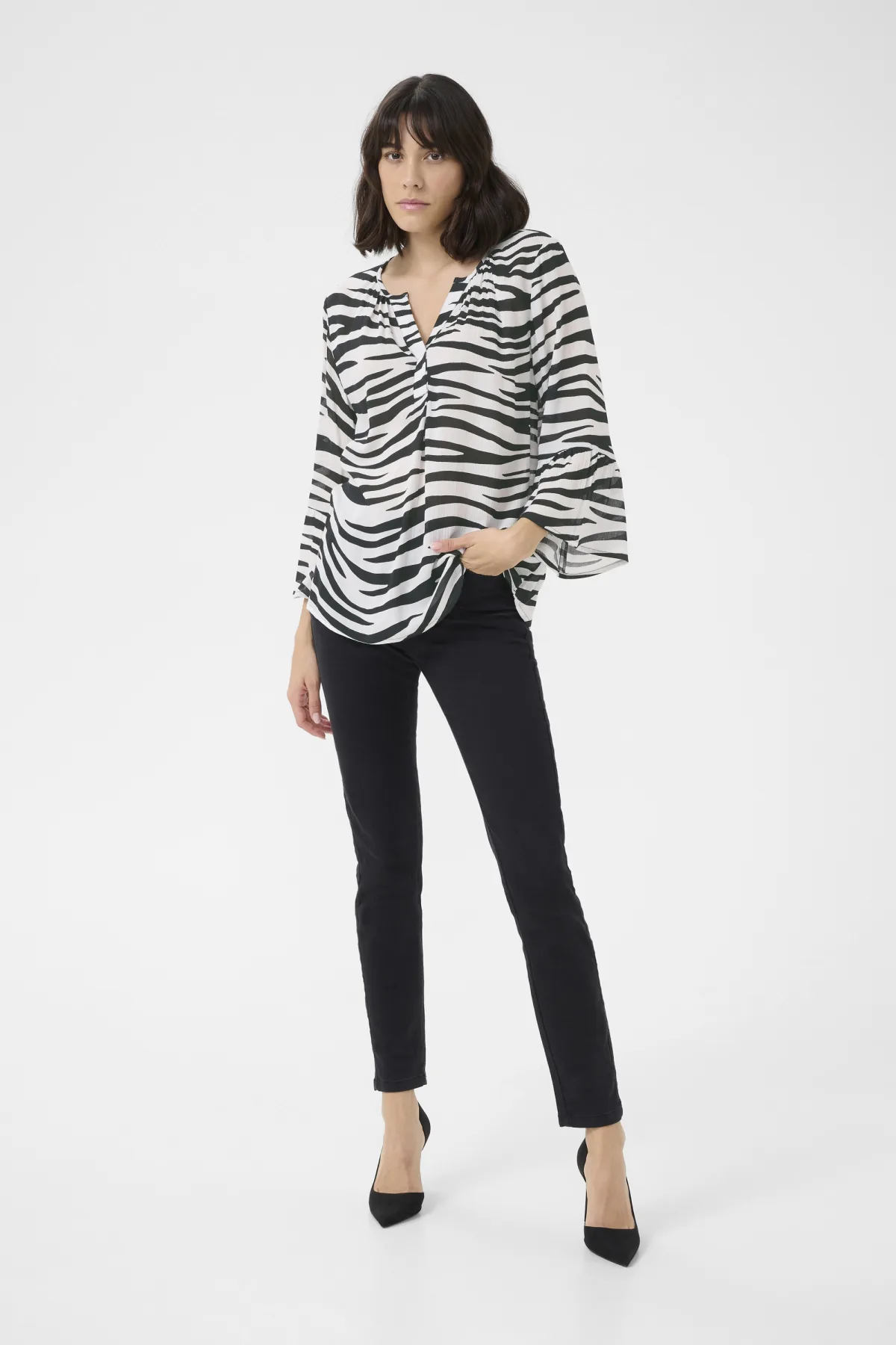 Blouse met korte mouwen Regular fit Chalk/Black Animal