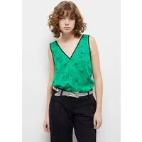 The Kooples Top Sans Manches Details Dentelles Green