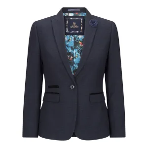 Dames getailleerde tweed marineblauwe geruite blazer wollen jas