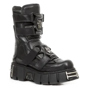 New Rock Punk halfhoge zwarte leren laarzen-M-422-S1
