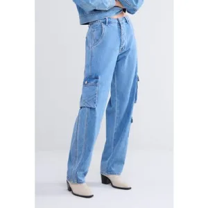 Summum Woman Cargo Jeans Baggy Cotton Jeans Blues