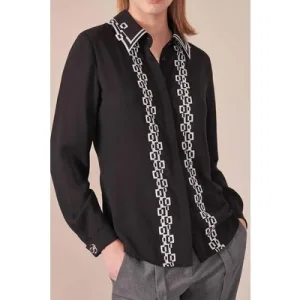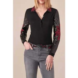 EsQualo Blouse Fancy Flower Jacquard Black