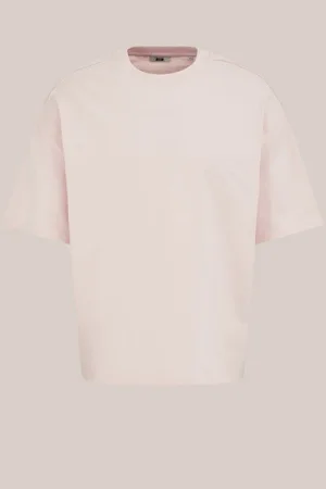 WE Fashion – Heren boxy fit T-shirt – Boxy Fit – Zalmroze – Katoen –