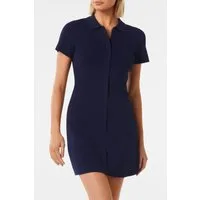 Forever New Beth Zip Crepe Knitted Dress Navy
