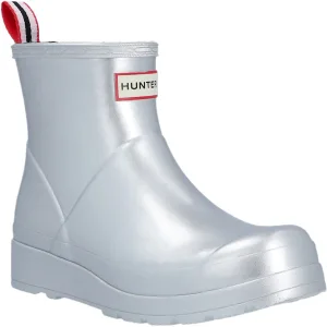 Hunter Play Kort Metallic Rubber Dames Wellington Boots Zilver
