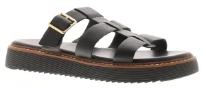 Hush Puppies Dames Sandalen Celeste Slip-On Gladiator Leer Gesp Zwart