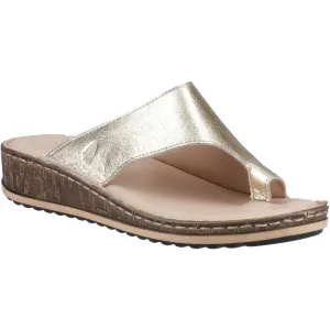 Hush Puppies Elissa Toepost Suède Dames Gouden Sandalen
