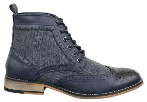 Klassieke Tweed Oxford-enkellaarzen voor heren in marineblauw leer