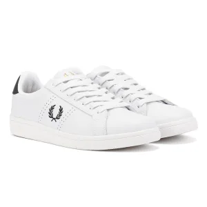 Fred Perry Heren Laurier Krans Logo Leren Trainers (Wit)