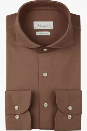 Profuomo Japanese Knitted Jersey shirt bruin, Effen