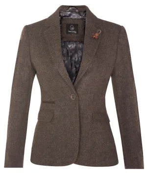 Dames Tweed jaren 1920 visgraatbruine blazer