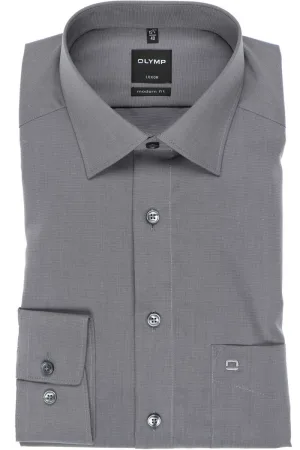 OLYMP Luxor Modern Fit Overhemd middengrijs, Effen
