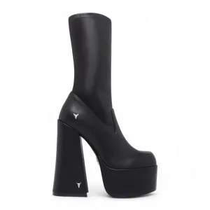 Windsorsmith Dames Zwarte Mid-Calf Sock Platform Goth Hak Laarzen – Saviour