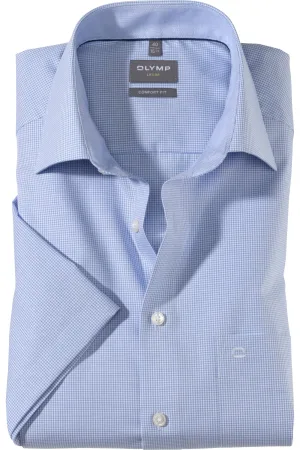 OLYMP Luxor comfort fit overhemd – korte mouw – lichtblauw met wit geruit (contrast) – Strijkvrij – Boord