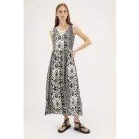Motivi Long Dress In Ethnic Patterned Voile Black