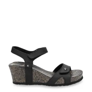 Fly London Dames BONO290FLY Zwarte Mousse Leren Sandalen Espadrille Wedges