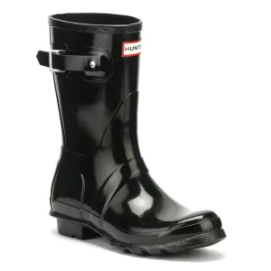 Hunter Originele Gloss Korte Zwarte Synthetische Wellington Laarzen