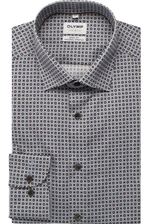 OLYMP Level Five Overhemd rook blauw, Bedrukt