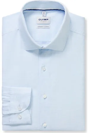 OLYMP Level Five Garment Washed Linnen Overhemd lichtblauw, Faux-uni