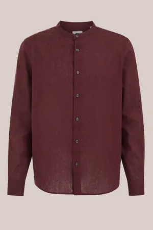 WE Fashion – Heren regular fit overhemd van linnenmix – Regular fit – Donkerrood – Linnen –