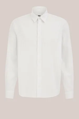 WE Fashion – Heren regular fit overhemd van linnenmix – Regular fit – Wit – Linnen –