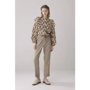 Summum Woman Trousers Linen Blend Twill Khaki
