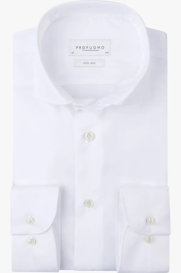 Profuomo Sky Blue Japan Slim Fit Jersey shirt wit, Effen