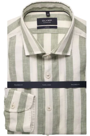 OLYMP SIGNATURE Soft Business Linnen Overhemd lichtgroen, Gestreept