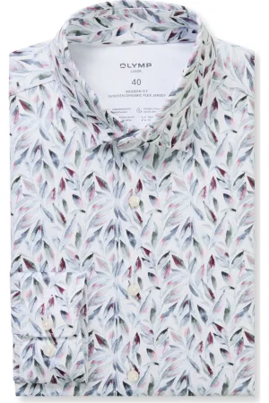 OLYMP Luxor 24/Seven Jersey shirt wit, Bedrukt