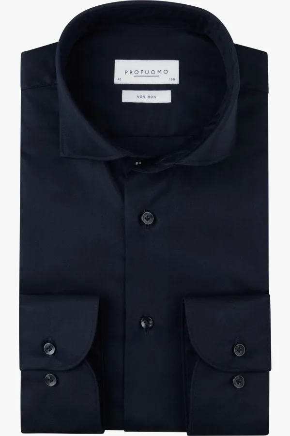 Profuomo Overhemd donkerblauw, Effen