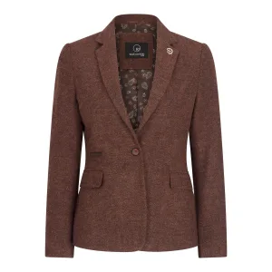 Dames roestbruine visgraat wollen tweed ruitblazer