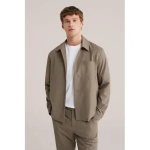WE Fashion – Heren slim fit pantalon met structuur – Slim Fit – Beige –