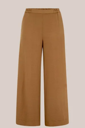 WE Fashion – Dames wide leg pantalon met structuur – Curve – Regular fit – Lichtbruin – Viscose – Plus Size