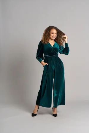Ava jumpsuit van fluweel – Smaragd