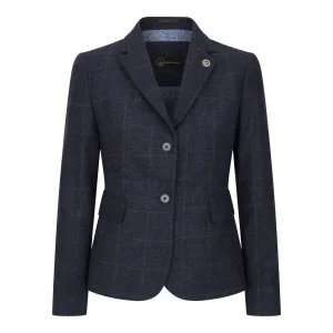 Marineblauwe, getailleerde tweed formele blazer voor dames