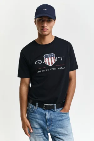 GANT Shield T-Shirt ronde hals zwart, Bedrukt