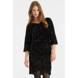 GREAT LOOKS blouse met zilveren all-over lurex print zwart/zilver