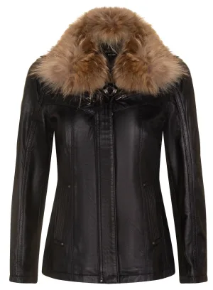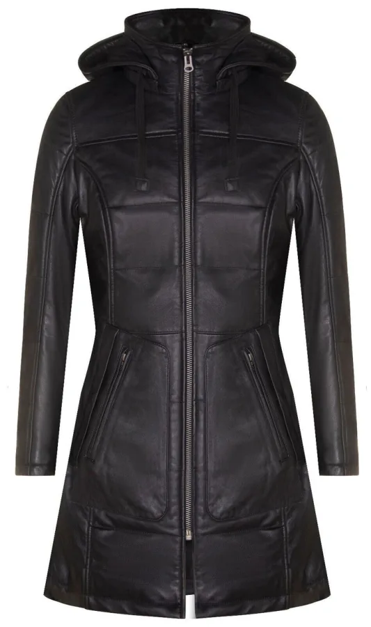 Dames leren gewatteerde parkajas met capuchon-Olney
