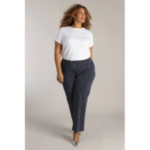 Colletta straight high waist gestreepte casual broek donkerblauw
