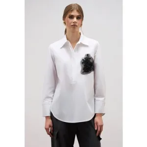 Oltre Oversized Blouse With Jewel Patch White