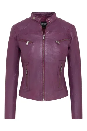 Dames paars slim-fit leren bikerjack – Maldon