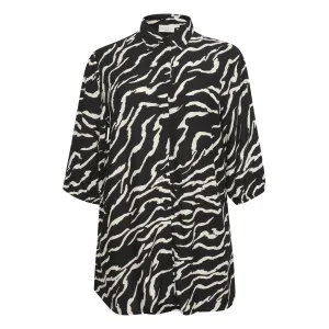 WE Fashion – Dames blouse met structuur – Curve – Regular fit – Donkerbruin – Plus Size