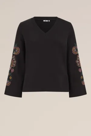 WE Fashion – Dames sweater met embroidery – Curve – Regular fit – Zwart – Katoen – Plus Size