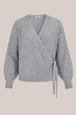 WE Fashion – Dames Overslagvest met pailletten – Curve – Regular fit – Grijs – Plus Size