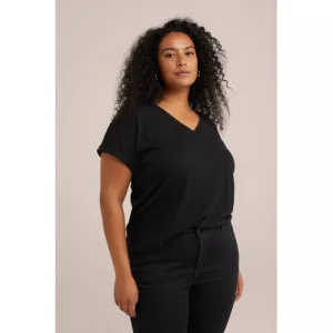 WE Fashion Curve top met ingebreid patroon zwart