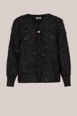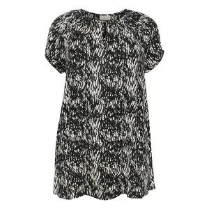 WE Fashion – Dames blouse met jacquard-dessin – Curve – Regular fit – Zwart – Plus Size