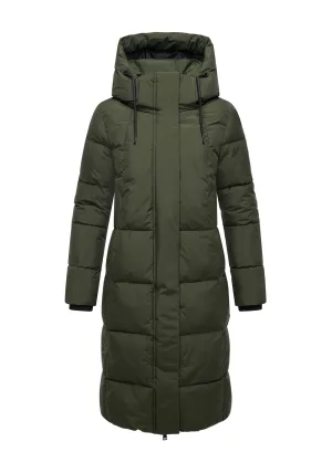 Marikoo dames gewatteerde mantel Firella met capuchon & tweewegrits