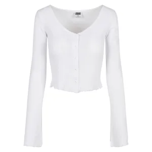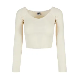 Dames t-shirt met lange mouwen en v-hals in Shorts ribstof Urban Classics